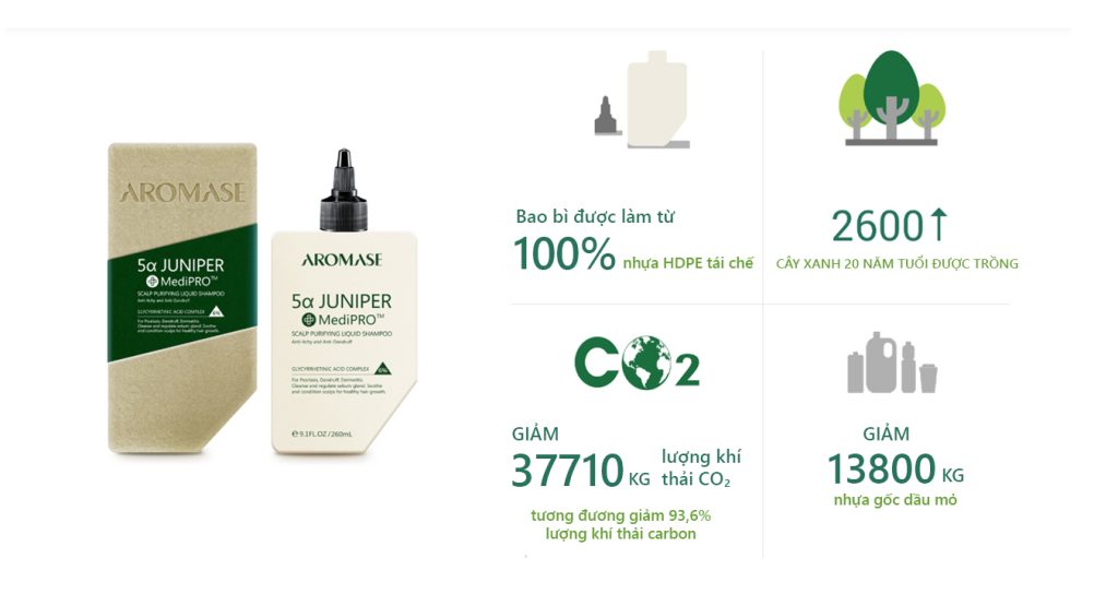 Là một trong những “cư dân” của hành tinh này, điều quan trọng là phải ưu tiên sự phát triển bền vững của Trái Đất. Aromase cam kết sử dụng hơn 50% năng lượng xanh và đổi mới bao bì sang chai nhựa tái chế (rPET), điều này giúp Aromase đạt được chứng nhận cradle to cradle hạng Bạc. Thông qua hợp tác với các đối tác toàn cầu, Aromase đã trồng thành công hơn 300 cây xanh trên khắp Châu Á, Châu Mỹ và Châu Phi, góp phần vào các nỗ lực tái trồng rừng trên toàn thế giới. Hãy cùng nhau tạo ra tác động tích cực cho hành tinh của chúng ta.