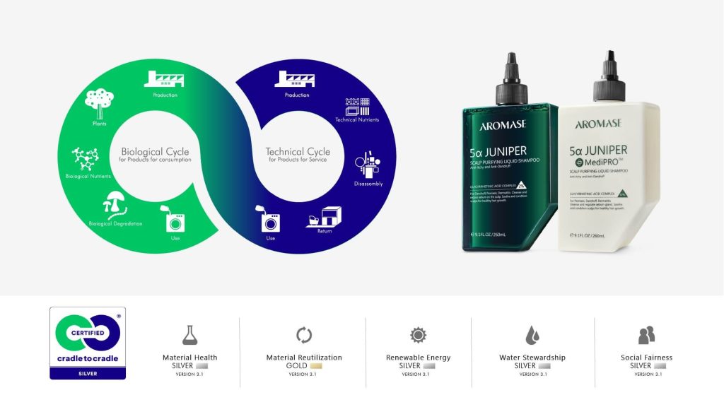 Aromase – thương hiệu dầu gội hàng đầu châu Á đã ghi dấu ấn quan trọng khi trở thành thương hiệu đầu tiên trong khu vực đạt chứng nhận Cradle to Cradle (C2C) hạng Bạc danh giá. Tiêu chuẩn toàn cầu này khẳng định cam kết của Aromase trong việc sản xuất các sản phẩm an toàn, bền vững và được thiết kế nhằm góp phần thúc đẩy nền kinh tế tuần hoàn.