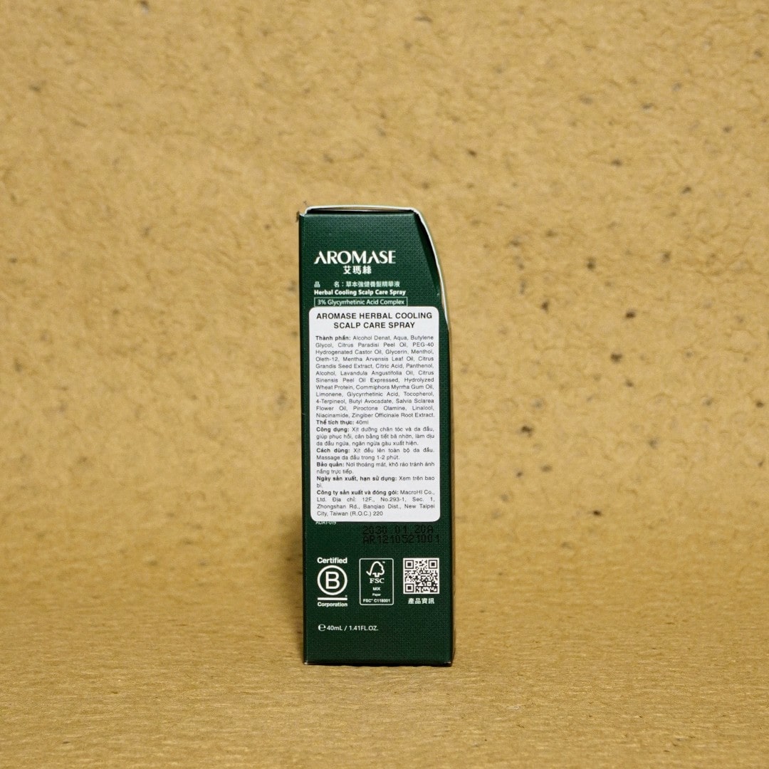 Xịt dưỡng Aromase Herbal Cooling Scalp Care Spray 40ml dịu viêm da đầu dầu